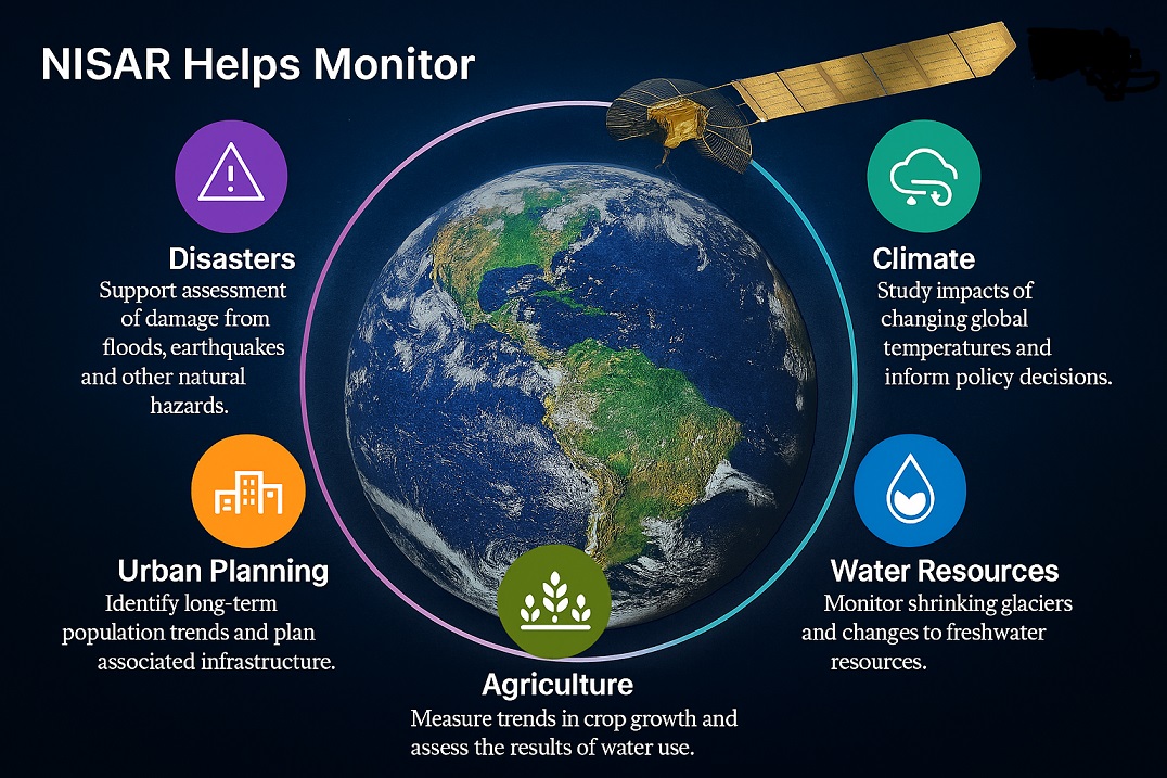 With natural disasters and climate shifts intensifying, NISAR’s ability to detect tiny surface movements—globally, every 12 days, in any weather—makes it one of the most ambitious Earth-monitoring missions ever launched.